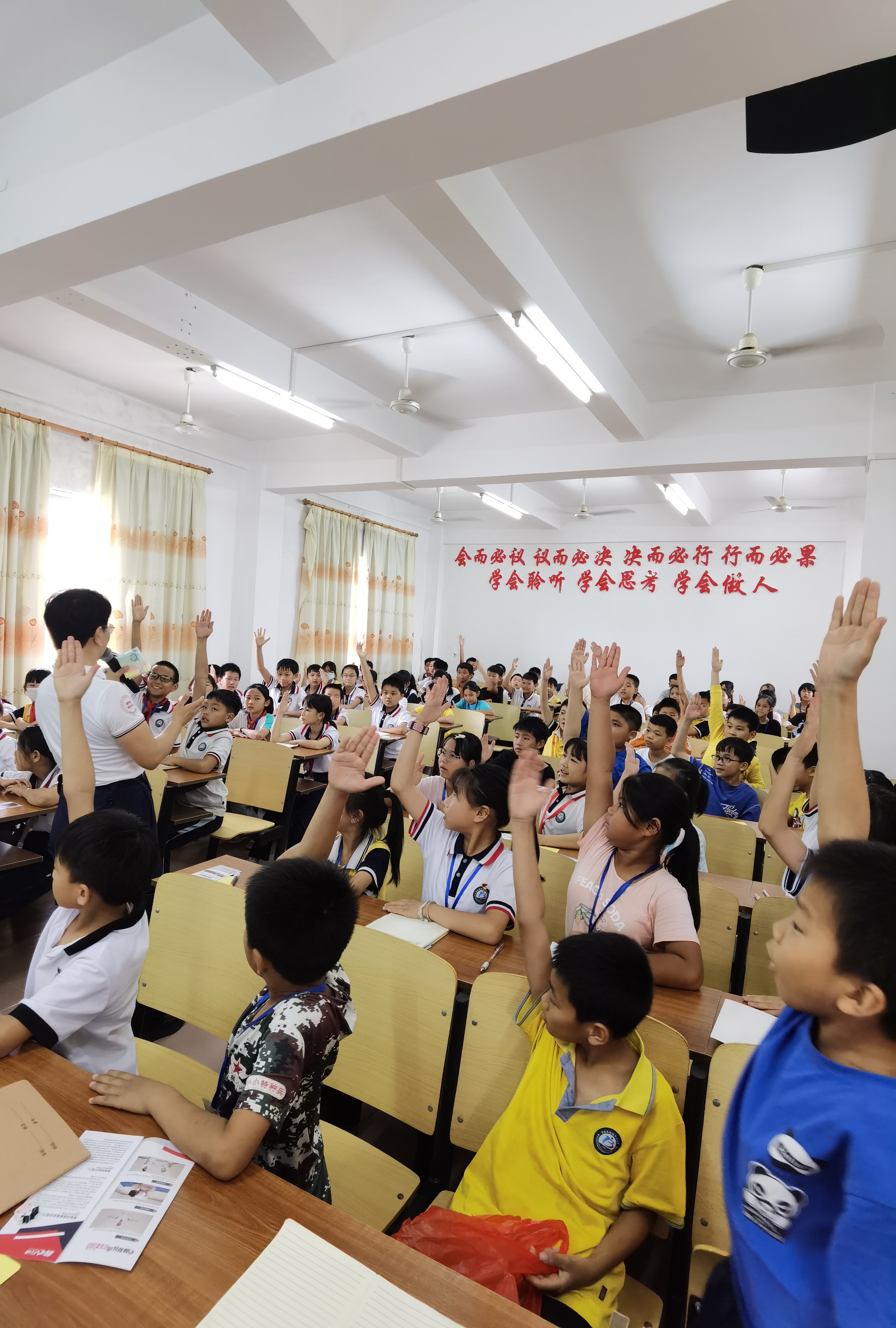 来自全球儿童安全组织(Safe Kids Worldwide)的各种教学小道具,加上精心设计的主题课程,溺水场景演练、气道异物梗阻解救、止血包扎的趣味练习,心肺复苏术和AED的体验学习,幽默风趣的讲师带领下,同学们时而欢笑连连、时而静心思考,时而快速抢答,时而争当课程小助教,课程氛围生动活泼,学习内容寓教于乐,赢得师生们和志愿者们阵阵掌声,活动结束后,孩子们还认真的提交了自己的课堂笔记和学习感言,大家都纷纷表示能经常得到这样的学习机会。