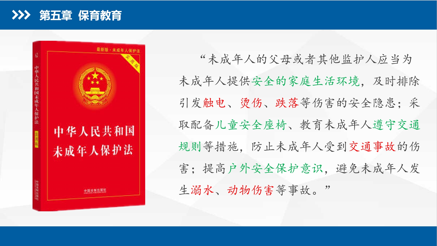 简介:借助普及《学前教育法》机会,分享5S伤害隐患排查原则、急救基础知识等伤害预防处置内容。